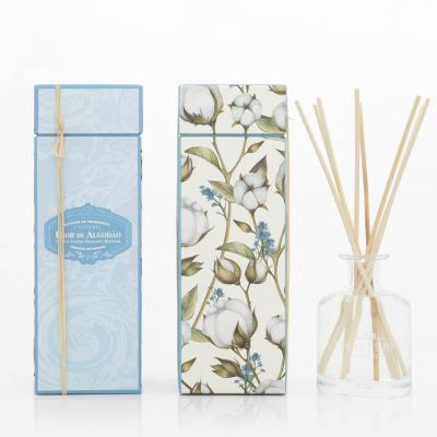 Castelbel / Portugália | Castelbel Cotton Flower 250mL Fragrance DiffuserOlaj alapú parfüm diffúzor, amely természetes illóolajokat tartalmaz, gondosan, elegánsan illatosítva és egyéniséget adva bármely belső térnek. Nem tartalmaz alkoholt, ezért lassan párolog. Kézművesek által Portugáliában kézzel fújt, kizárólag a márka számára készült egyéni üvegben kerül forgalomba parafa dugóval együtt, amelyet ugyanúgy forgatva kell kihúzni, mint egy borosüveg dugóját. Bambusz pálcák mellékelve a dobozban.