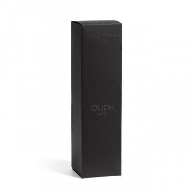 Locherber Milano / Olaszország | Diffusor Spray 100ml OudhLakásparfüm spray kézzel festett matt fekete üvegben, 100 ml parfümmel. A helyiséget akár egyetlen fújással is finoman illatosítja, a spray azonnali hatásának köszönhetően abban a pillanatban élvezheti a kellemes illatot, amikor arra szüksége van. Használható illatpárna intenzitásának felerősítésére is.
