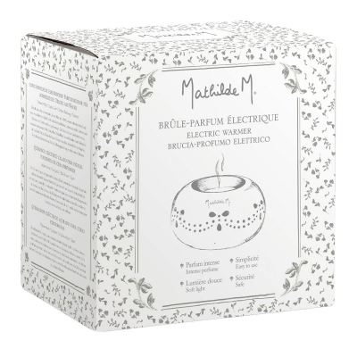 Mathilde M / Franciaország | Perle electric perfume burner for wax decorationsHagyja magát elcsábítani ezzel az elektromos kerámia diffúzorral. Egyszerűen használható és biztonságos, gyorsan és erőteljesen illatosítja a közepes méretű szobákat. Helyezze gépre a Mathilde M. parfümös viaszdekorációkat, és hagyja, hogy azok finoman megolvadjanak. A parfümillatokat keverheti a viaszok olvadása közben, így csak a fantáziája szabhat határt egy Önre szabott parfümaroma létrehozásához.